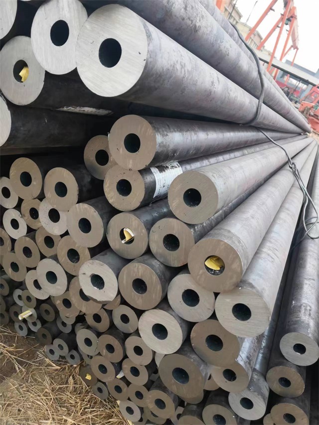 2.来宾45#无缝钢管不要选用渗碳淬火的热处理方法。调质处理后零件具有较好的综合机械性能,广泛应用于各种关键的构造零件,尤其是那些在交变负载下工作的曲轴、螺栓、齿轮及轴类等。但表面硬度较低,不耐磨。可用调质+感应淬火提升零件表面硬度。渗碳处理一般用于表层耐磨、芯部抗冲击的轻载零件,其耐磨性比调质+感应淬火高。表面含碳0.8--1.2%,芯部一般在0.1--0.25%(必要的时候选用0.35%)。经热处理后,表层可以获得很高的强度(HRC58--62),芯部强度低,抗冲击。如果用来宾45#无缝钢管渗氮,淬火后芯部会有硬脆的奥氏体,丧失渗碳处理的优势。如今选用渗碳工艺的材料,含碳都不高,到0.30%芯部强度已经能够达到很高,应用上不常见。0.35%从来没见过案例,只在教材内有介绍。可以采取调质+高频感应淬火的工艺,耐磨性较渗氮略差。GB/T699-1999标准规定的45钢推荐热处理制度为850℃淬火、840℃淬火、600℃淬火,达到性能为抗拉强度≥355MPa,GB/T699-1999标准规定45钢抗压强度为600MPa,抗拉强度为355MPa,延伸率为16%,断面收缩率为40%,冲击功为39J。